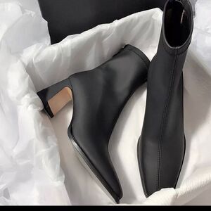 Ankle mid heel Chelsea square toe Boots with back zipper size 8