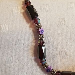 Hematite beads and purple flowers