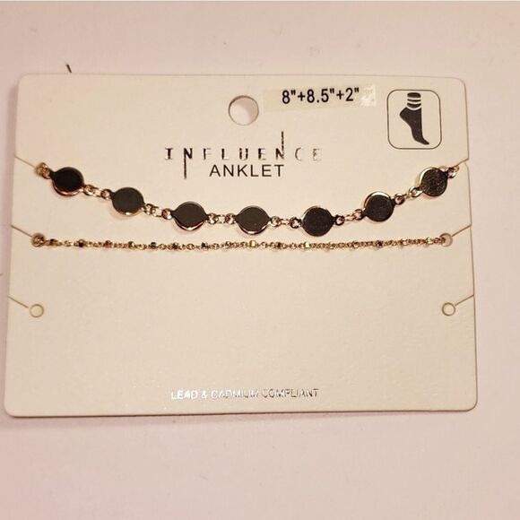 this brand new 8-in up to 8 1/2 + 2 in extender anklet is beautiful it's a multistrand. So pretty! Makes a great gift too. 18kt gold dipped. Nwot