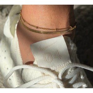Double layer chain waterproof anklet, perfect for everyday wear. Most loved Herringbone Chain anklet paired perfectly with a dainty beaded chain anklet.