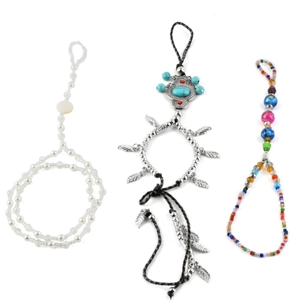 5.01 Blue Howlite and Multi Gemstone Set of 3 Anklet in Silvertone and Iron. Will sell at a set or individually. I took the pic of them on my hand to show how it would look on the foot.