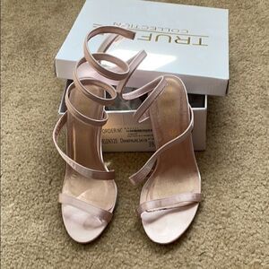 Truffle collection champagne color ankle wrap heels, size 6...wears like a 6-7. Never worn...wrong size ordered.