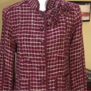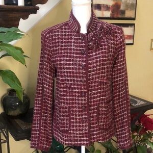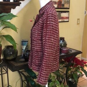 Ann Carson Women’s Silk Woven Burgundy Plaid Button Up Career Blazer Size Large