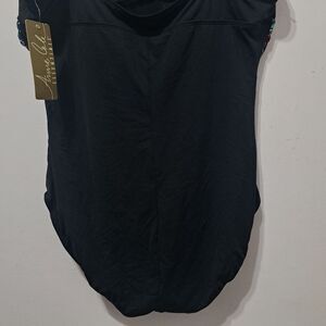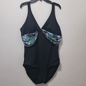 Ann Cole Essentials One Piece Swimsuit Summer Black Multi Color Size 16 NWT