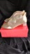 Metallic Goldtone Mesh Studded Heels Sandals. Patterned mesh on upper embellished by rhinestone details. Block heels completed by silvertone studs. Back zipper opening.
