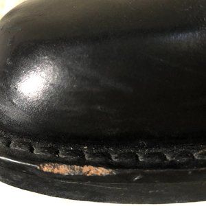 Originally $1180. Ann D's boots are about as high quality as it gets, the leather is so lush! The last 3 photos are the EXACT pair you'll receive (last photo is a closeup of a nick on the toe, the most notable sign of wear). General wear but overall great condition. Soles have plenty of wear left. 3" wooden wedge heel; black fine grain calf leather; made in Italy. IT38.5 equals US 8.5 (I'm a 9 and they fit, but they're the tiniest bit too snug for me to wear for hours).