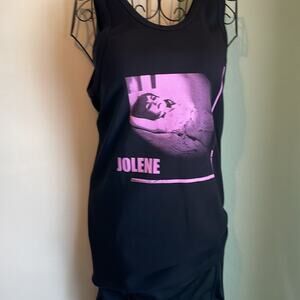 Black and purple cotton Jolen -print tank top from Ann Demeulemeester featuring a jersey knit, a photographic print, a round neck, a sleeveless design, slim-fit silhouette with a scoop neck and side-slit dipped hem.Length 27.3 inches graphic tee glam, rock, grunge, edgy, alternative