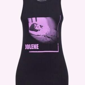 Black and purple cotton Jolen -print tank top from Ann Demeulemeester featuring a jersey knit, a photographic print, a round neck, a sleeveless design, slim-fit silhouette with a scoop neck and side-slit dipped hem.Length 27.3 inches Grunge, hobo, chic, distressed, rock, punk, street, 90s edgy, skater, urban androgynous, rockabilly