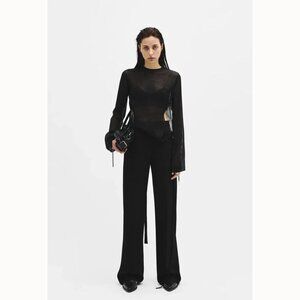 TAGS | Ann Demeulemeester, Wide Leg Pants, Black Wool Trousers, Belgian Designer, Avant Garde, Minimalist Luxury, Tailored Edge, Runway Fashion, Quiet Luxury, Androgynous Silhouette, Goth