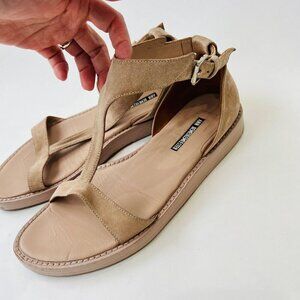Ann Demeulemeester t-straps suede sandals, Beige, Size 9/9.5”