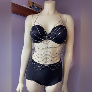 Simple, sexy and exciting! Draped layer rhinestones perfect club wear accessory! Each setting is an exquisite stone with brilliant luster. 100% lead free materials. One size fits most.