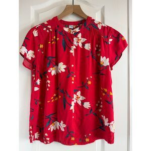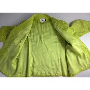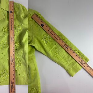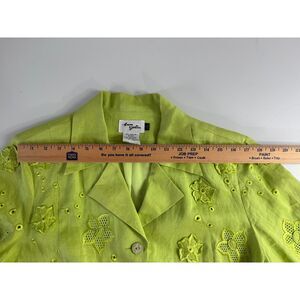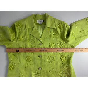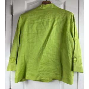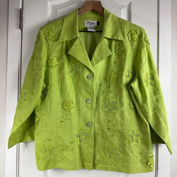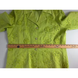 Ann Gerlin Women's Green 100% Linen Floral Jacket Size 14 *Stains*