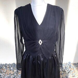 Ann Hobbs For Kastina Dress Womens Size 10 Satin Chiffon Bow Front V Neck Black