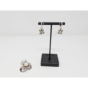 Ann King Sterling Silver Freshwater Pearl Orchid Flower Pendant Earrings Set