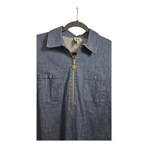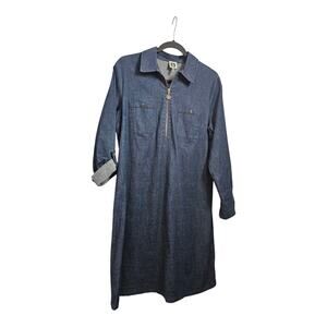 Ann Klein Chambray Shirt Dress Size 8 Dark Wash Collared RollTab Sleeves Pockets