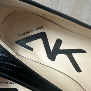 Step out in style & comfort in these classic slip-on black, patten flats by Ann Klein with silver buckle plaque detail. Padded insole and rubber soles.