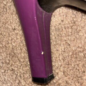 Beautiful pumps that I wore twice. They're in very good condition. As shown in the last two pictures, there are two tiny dots in the suede on one shoe (you cannot see these when wearing and I had to zoom in to make them visible in the photo), and there is a pick in one of the heels. The style is "Clemence."