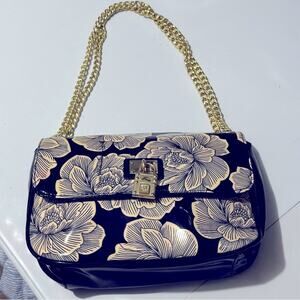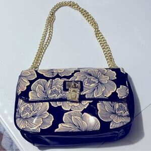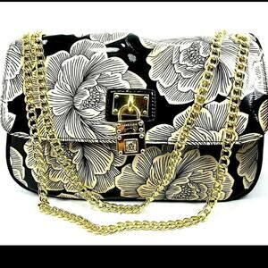 Ann Klein High Gloss Floral Chain Crossbody/Shoulder bag/Purse parent leather