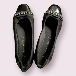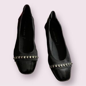 Ann Klein Iflex Black Ballet Flats Gold Accents Patent Leather Toe Size 8.5