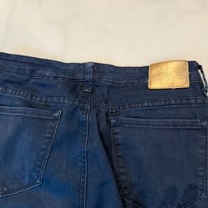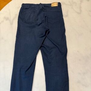 Ann Klein Skinny Ankle, Women’s size 8 X 29” inseam, inky blue color, riveted front pockets, 69% Cotton, 29% Poly, 2% Elastane, machine washable & dryable, worn previously, some slight stretching apparent on front, but lots of life left in them