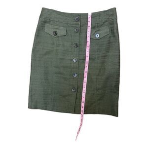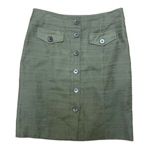Ann Klein Linen Blend Army Green Button Up Pencil Skirt Sz 4 Office Classic EUC