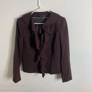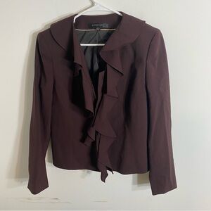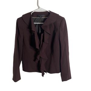 Ann Klein Magenta Red Ruffle Blazer Sz 10 Missing Button Jacket