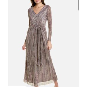 Ann Klein Metallic Long Sleeve Maxi Dress