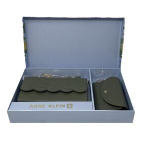 NIP: Stylish, sage green faux leather / gold tone hardware matching 3 piece gift set from Anne Klein.