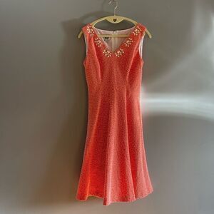 Gorgeous sherbet coral/orange and white sleeveless fit and flare dress from Ann Klein, in a size 2.