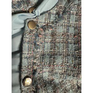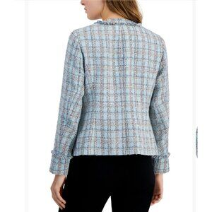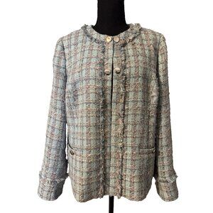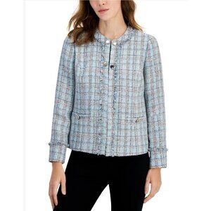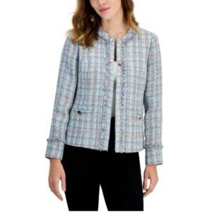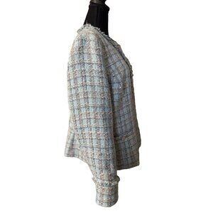 Anne Klein Tweed Jacket in Opal Blue Multi With Fringe Detail