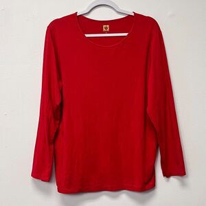 Ann Klein Women's Red Long Sleeve T-shirt Plus size 1X Solid Color Pullover