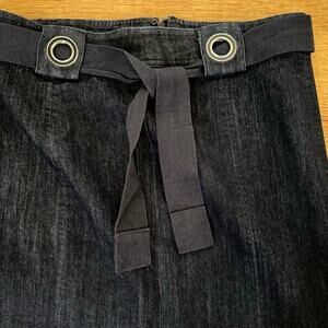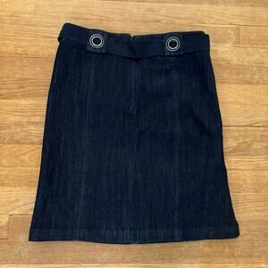 Ann Klein navy denim grommet loop knee length belted pencil skirt size 4 b29