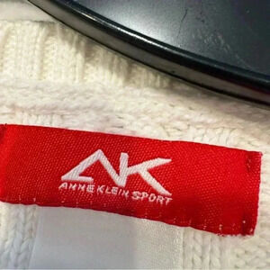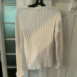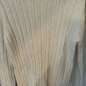 Ann Klein sport women’s white cable knit sweater crew neck cuff sleeves size L