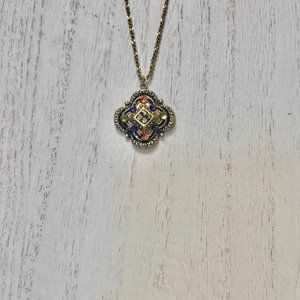 Ann Koplik Gaelsong Quatrefoil Crystal Pendant Necklace, VTG Irish Jewelry