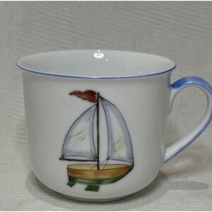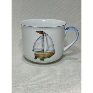 Ann Marie Murray Sailboat Childs Cup Hand Painted Porcelain 3”H White Nautical