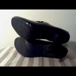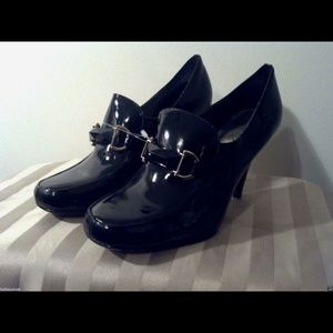 Ann Marino Black Patent Leather Buckle Heels