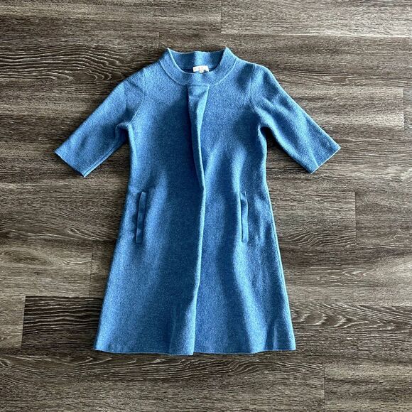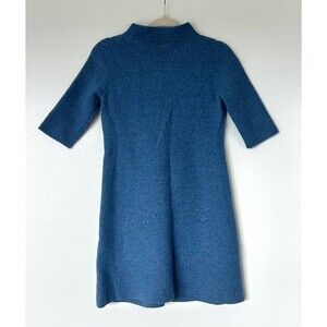 Ann Mashburn 100% Merino Wool Blue Knit Sweater Dress Mock Neck Mod Style