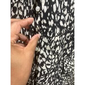 Ann Mashburn Black & White Button Down Linen Short Sleeve Midi Shirt Dress Sz M