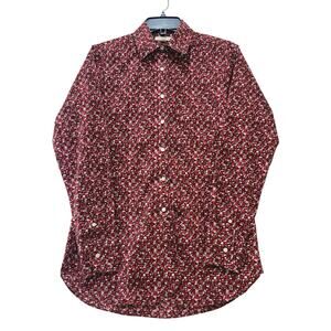 Ann Mashburn Blouse Shirt S Red & White Geometric Print Button Up Cotton Top