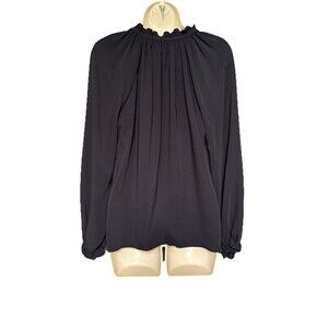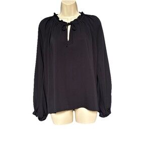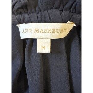 Ann Mashburn Blouse Size M Black Tie Neck Ruffles Silk Long Sleeve Stretchy