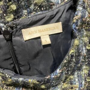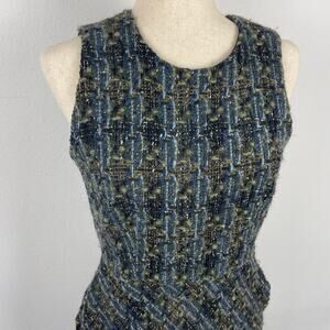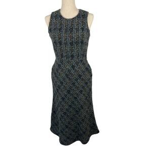 Ann Mashburn Blue Green Tweed Wool Sleeveless Sheath Trumpet Midi Dress Small