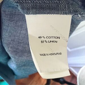 Ann Mashburn Blue Linen Cotton Chambray Blouse Size Small Tie Sleeves