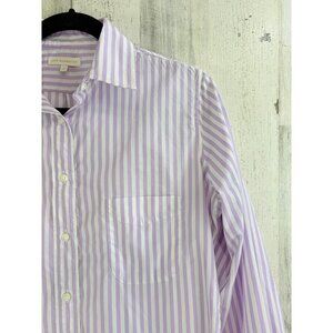 Ann Mashburn Boyfriend Shirt Sz M Lavender White Stripe Button Down