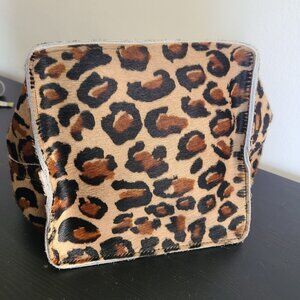 Ann Mashburn Bucket Bag Leather Leopard Print Pony Hair Purse Italy