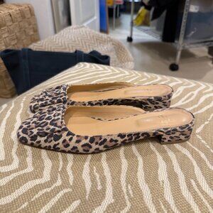Ann Mashburn Buckle leopard print mules in a 39.5 European. Low heel, leather, and easy to wear. In good condition.