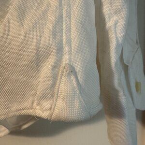 Gorgeous Ann Mashburn Button Up in a beautiful twill fabric with a great texture. Nice condition, some tiny spots on inside of collar and at corner seam. May come out/wash out, I have not tried.