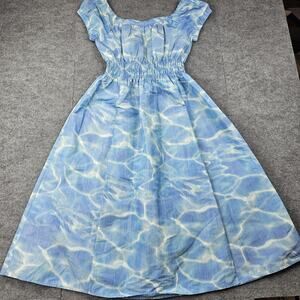 Ann Mashburn Dress Womens Medium Blue Water Smocked Waist A Line Midi Preppy