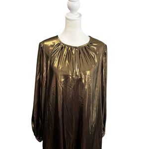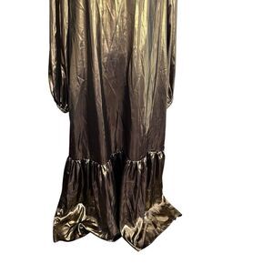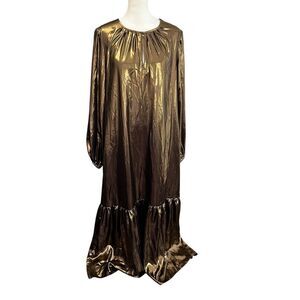 Ann Mashburn Gold Leme Metallic Long Sleeve Tiered Maxi Dress Gown S