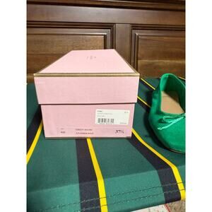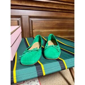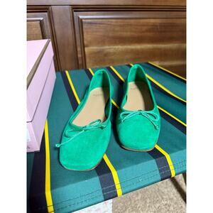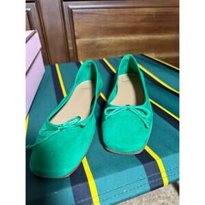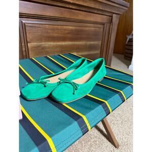 Ann Mashburn Green Suede Square Toed Ballet Flats Bow Women's 37.5 NIB