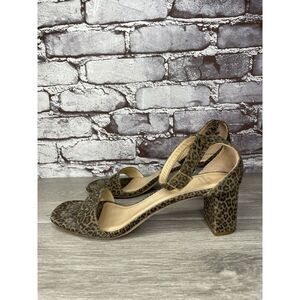 Selling Ann Mashburn Leopard Print Open Toe Block Heel Ankle Strap Sandals Women’s sz 38EU/7.5M US